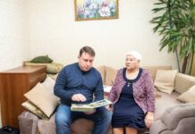 С 90-летием и праздником 8 Марта поздравил Дмитрий Жариков труженицу тыла Р. Е. Пантюшину