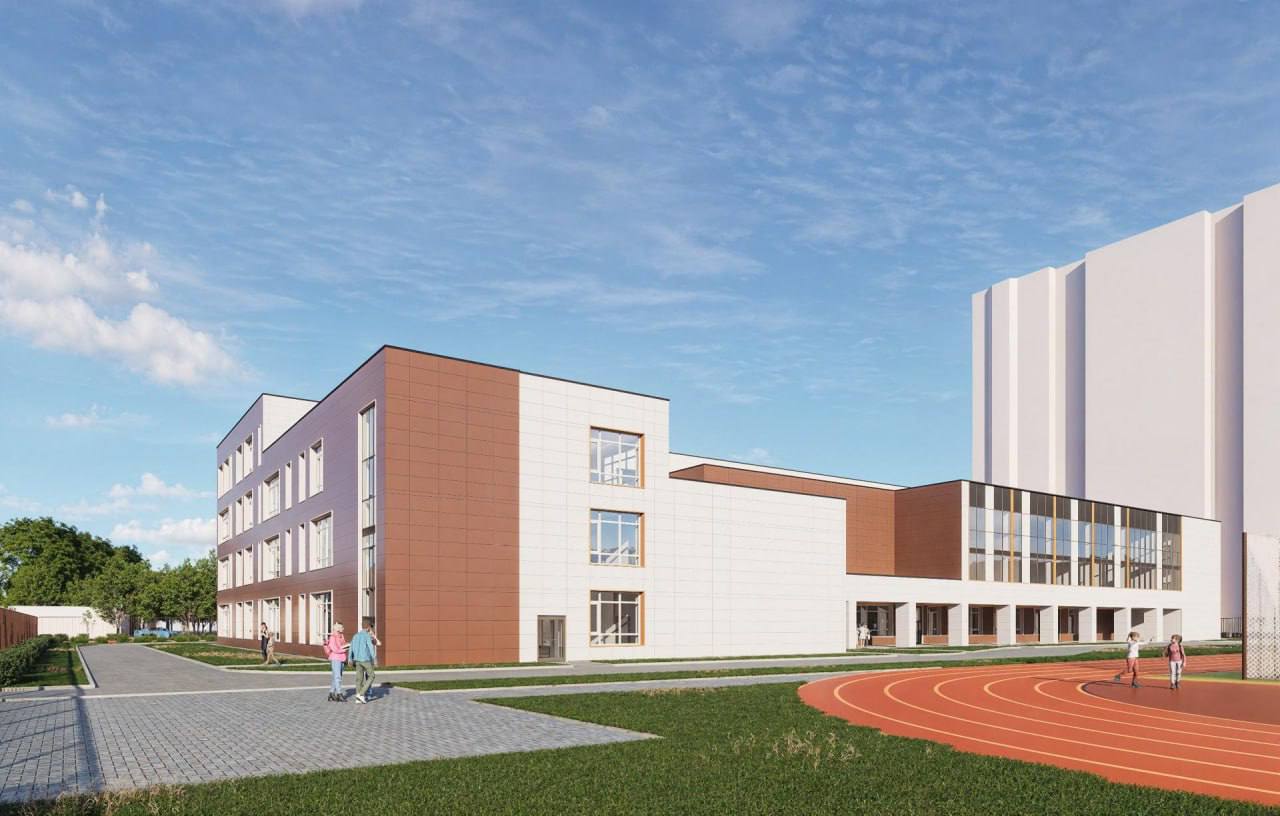 В новом корпусе школы разместятся универсальные и специализированные кабинеты, ИТ-полигон, спортивный зал и зал для проведения мероприятий, медиатеки и зоны отдыха, столовая с пищеблоком полного цикла.