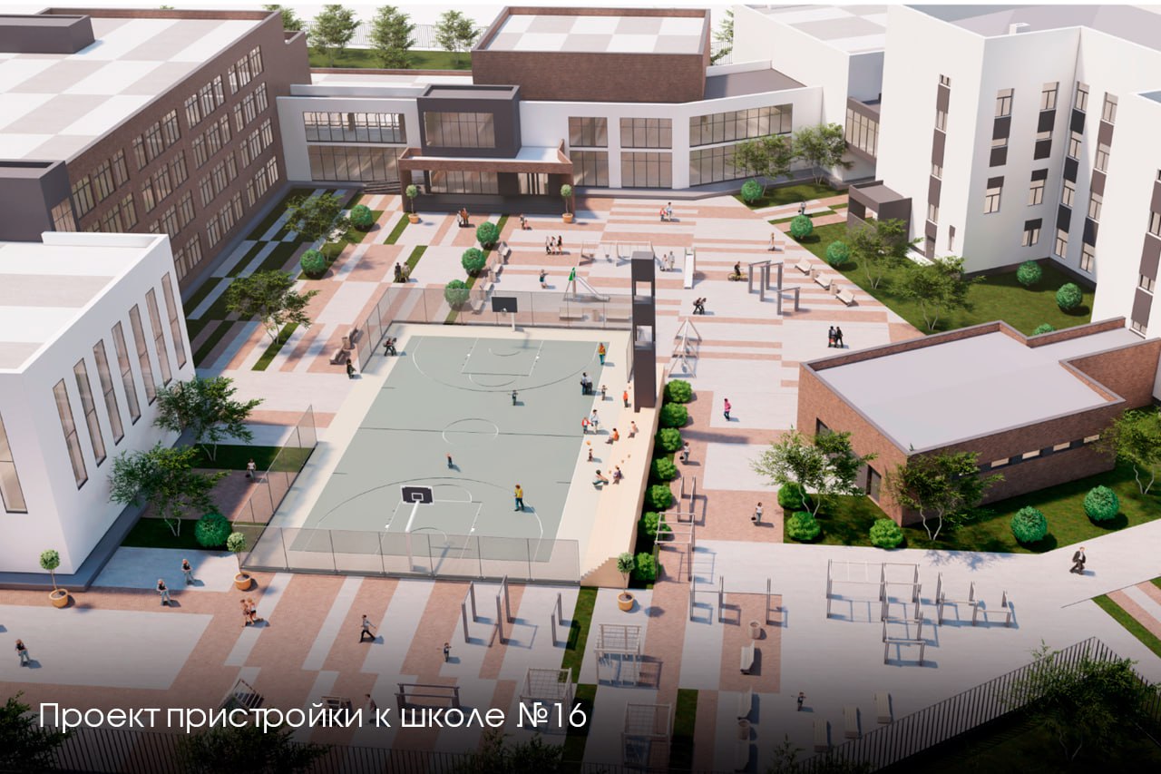 Сейчас она готова на 60 %. В новом здании будут просторные классы, библиотека с IT-зоной, актовый зал, мастерские: по дереву, металлу, текстилю, спортзал. Пристройку объединят теплым переходом с основным корпусом, который отремонтируют в следующем году. Пришкольную территорию благоустроят: сделают игровые и спортивные площадки, беговую дорожку и поле для игры в мини-футбол, баскетбол и волейбол.