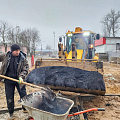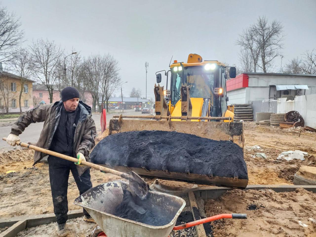 Параллельно идёт благоустройство прилегающей территории. Рабочие собирают спортивные тренажёры во дворе, асфальтируют тротуары и монтируют уличное освещение.
