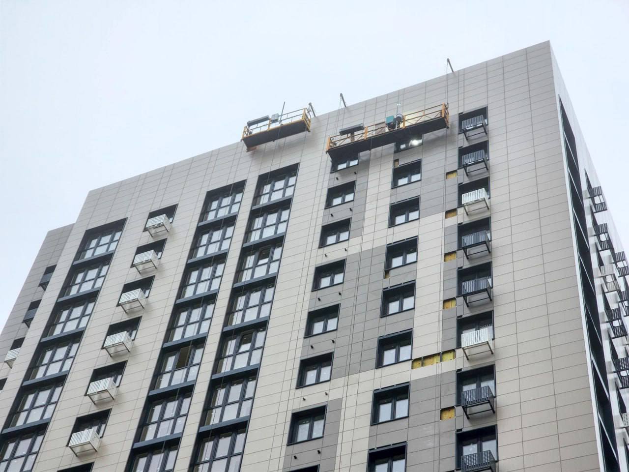 Сейчас подрядная организация заканчивает фасадные работы. Внутри здания уже уложили настенную и напольную плитку — как в квартирах, так и в местах общего пользования. В подъездах стены готовят под покраску, а в квартирах — под поклейку обоев.