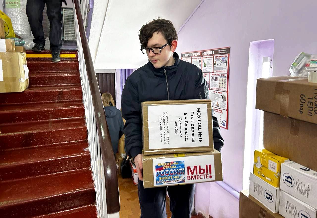 «Наша школа уже участвовала в акции «Подольск помогает». На этот раз мы собрали порядка 40 коробок. Девочки их упаковывают и подписывают, а мальчишки носят. А еще ребята передали на фронт около 700 новогодних открыток с добрыми пожеланиями и тёплыми словами», — рассказала заместитель директора по воспитательной работе школы № 16 Наталья Жаковщикова.