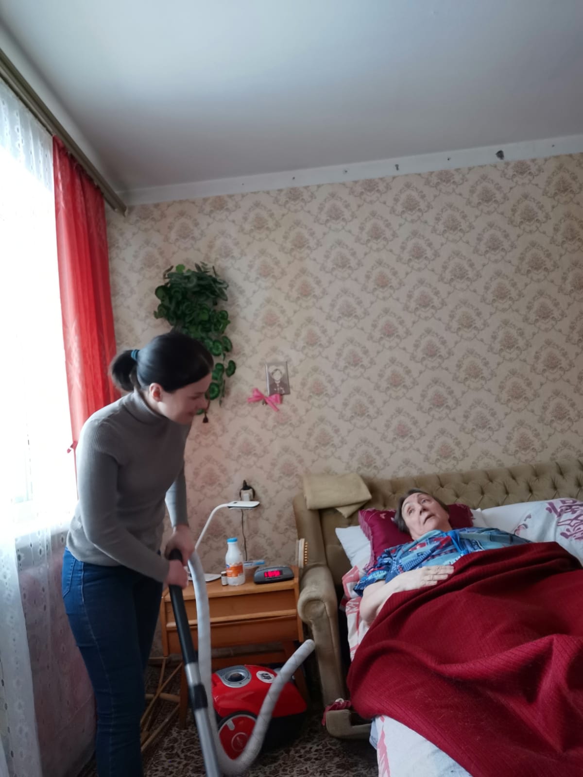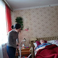 (На фото 1 социальный работник ОСО-5 С.В. Евдокимова со своими подопечными на освящении куличей. На фото 2 - ПСУ ОСО-5 Л. А. Меркулова готовится к Пасхе. На фото 3 социальный работник ОСО-5 П. В. Красногорова наводит порядок в квартире у ПСУ В. П. Новиковой).