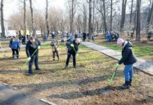 Партийцы Подольска присоединились к субботнику и привели в порядок сквер имени Долгого