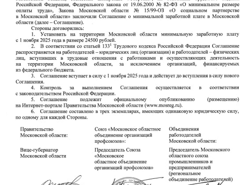 Экономика 29 октября 2025 года заключено соглашение о минимальной заработной плате в Московской области