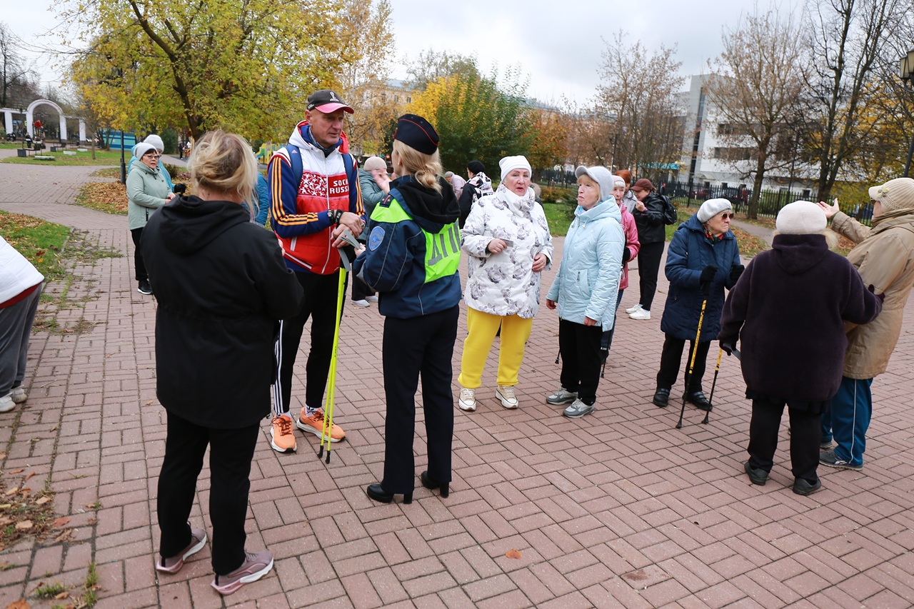 В детском парке мкр. Климовск городского округа Подольск сотрудники Госавтоинспекции провели встречу с любителями популярного во всем мире вида физической активности - скандинавской ходьбы.