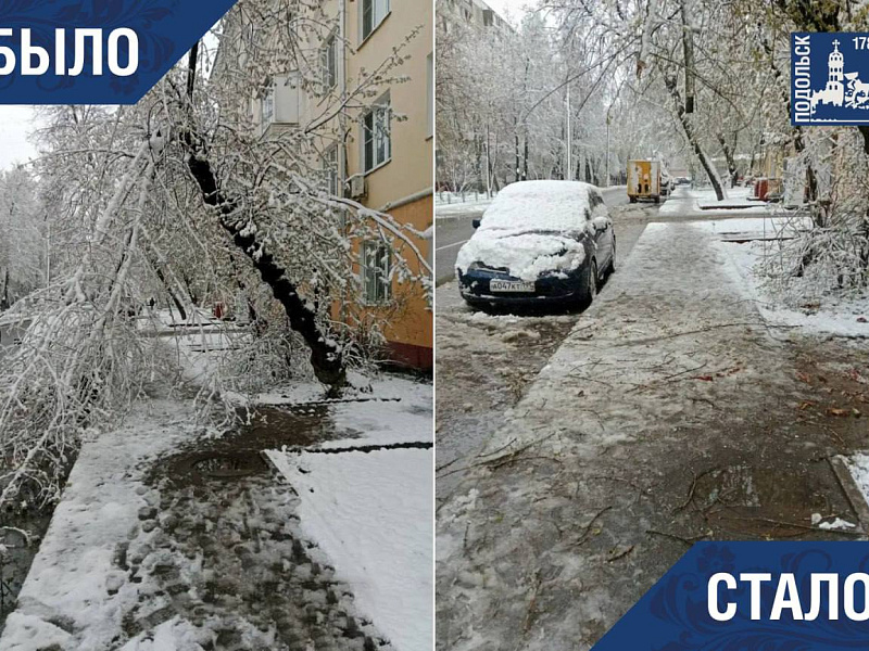 Коммунальные службы ликвидируют последствия сильного снегопада в Подольске