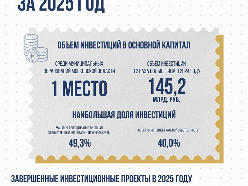 Спецпроекты По итогам 2025 года округ занял первое место в регионе по объему инвестиций в основной капитал.