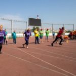 Спортсмены состязались в трех дисциплинах — прыжках в длину, толкании ядра, беге на 100 метров и в заезде на эту дистанцию на колясках.