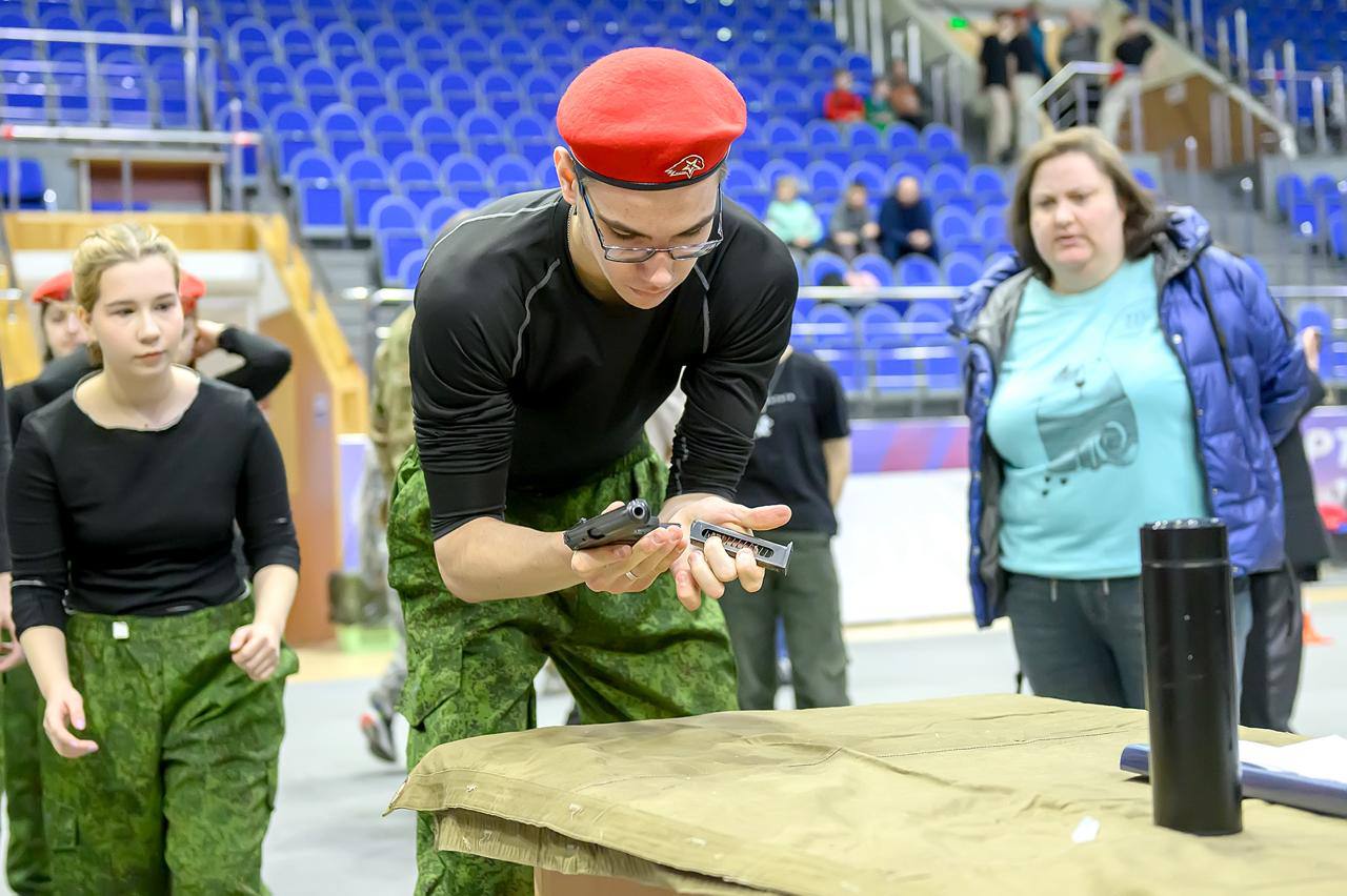 Юнармейцы соревновались в стрельбе из трех видов оружия: автомата Калашникова, пистолета Макарова и пневматического оружия, а также в сборке и разборке автоматов на время. Эти дисциплины требуют не только точности, но и высокой концентрации, что делает соревнования особенно напряженными.