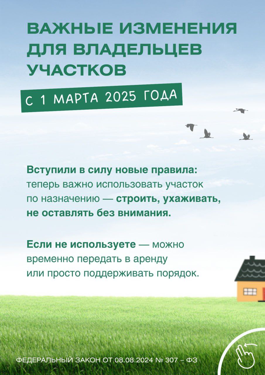Для тех, кто уже владеет землёй, отсчёт начинается с 1 марта 2025 года.