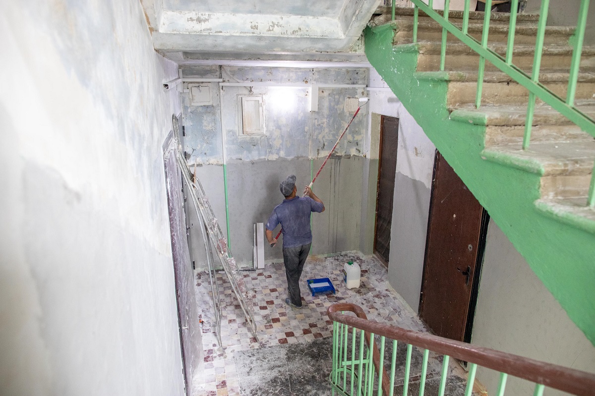– Мы выполняем полный цикл ремонтных работ, 100-процентный капитальный ремонт, полностью заменим всю штукатурку. В ближайшее время начнем делать замену окон. Планируем сдать подъезд 16 июля. Во время ремонта мы учитываем пожелания и просьбы жителей — от цвета стен до выбора материала пола, установим по их просьбе почтовые ящики в более удобное место, – рассказал Вячеслав Потемка.