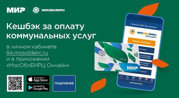 Также, клиентам МосОблЕИРЦ — держателям карты «Мир» — стала доступна возможность вернуть 1% от суммы коммунального платежа. Условие получения кешбэка — оплата через личный кабинет на сайте расчетного центра или через приложение «МосОблЕИРЦ Онлайн».