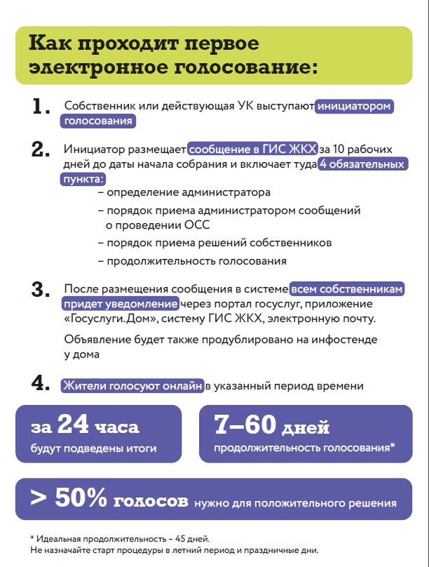 Министерство по содержанию территорий и государственному жилищному надзору Московской области информирует граждан о возможности участвовать в электронном голосовании собственников через систему ГИС ЖКХ из любой точки местонахождения и с любого гаджета, имеющего доступ к интернету. Если нет доступа к сети Интернет, то проголосовать можно в любом отделении МФЦ, где сотрудники окажут всю необходимую техническую и консультационную помощь.